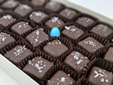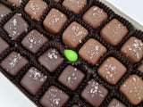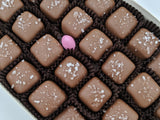 Our signature recipe of soft golden caramel covered with your choice of milk or dark chocolate and topped with Sea Salt. For those who appreciate an artisan taste experience, this is a delicious blend of complex flavors and a perfect balance of salty and sweet. 7 oz Box