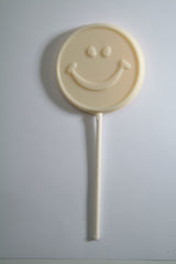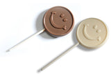 Put a smile on their face! Smiley face sucker on a stick 1 oz each. Available in milk chocolate and white chocolate.